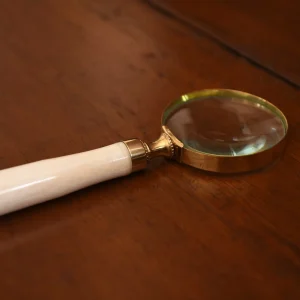 8″ Brass Magnifier with White Bone Handle