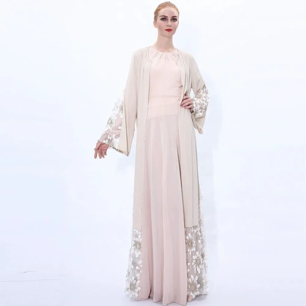 Mesh Embroidered Long Abaya