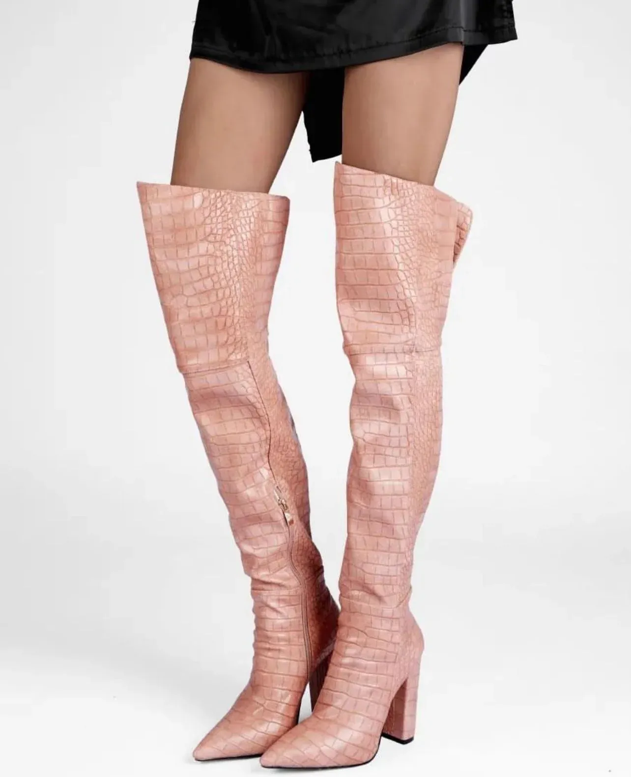 Mock Croc Over The Knee Heeled