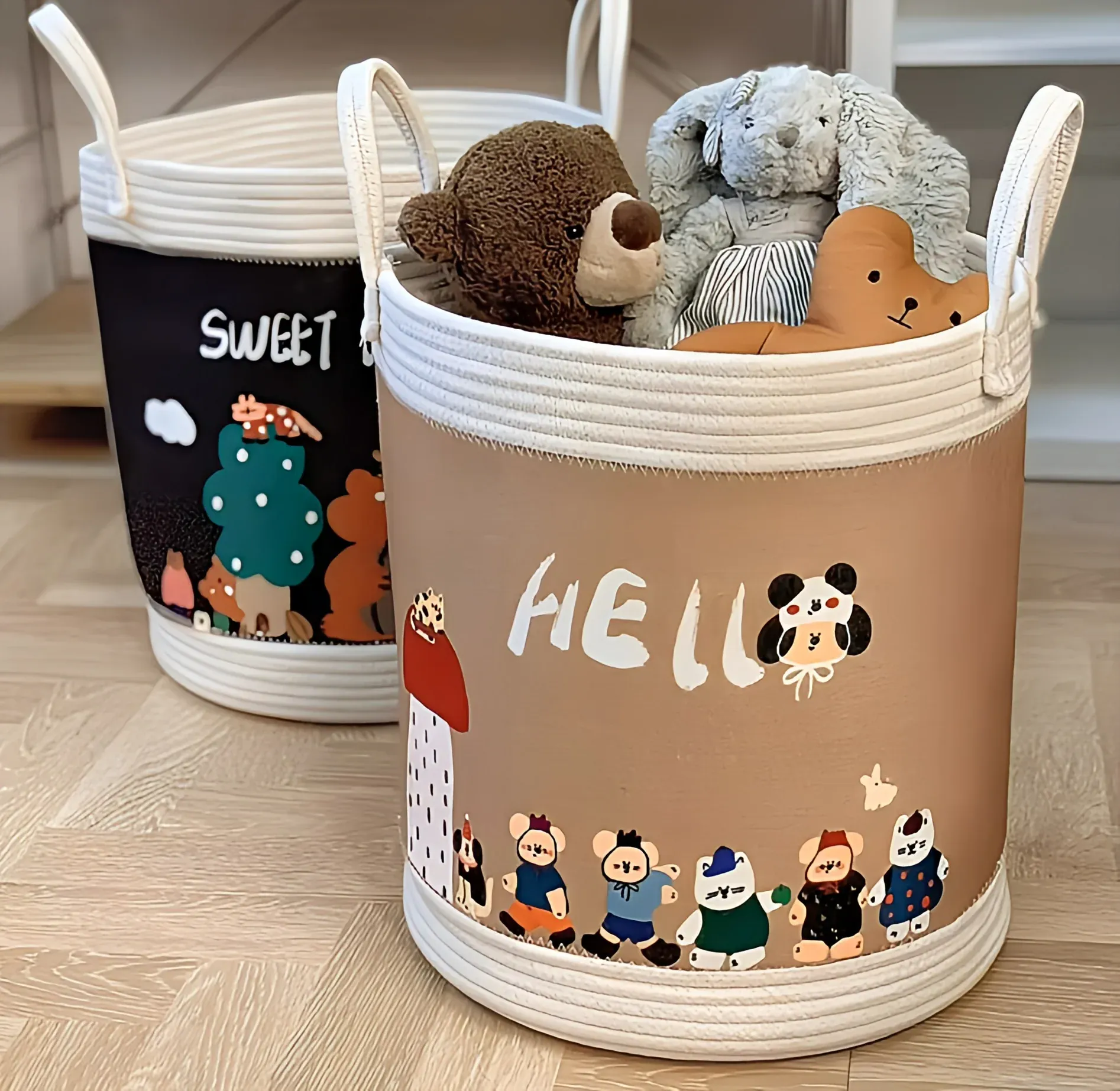 A storage basket designed for holding toys.