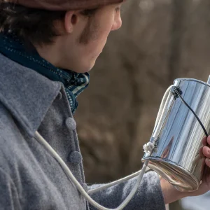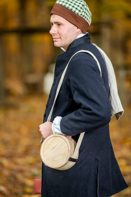 Each wooden canteen is ready to drink from when you receive it. The wide cotton strap is comfortable on the shoulder and the wooden stopper fits snugly to seal the canteen. The inside is coated with a thin layer of beeswax. These can be painted or stained to fit your impression.
